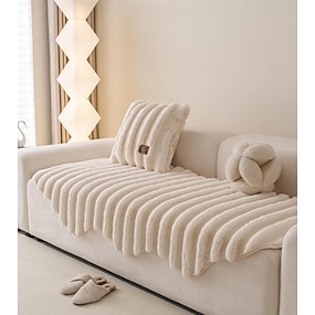 plysch anti-repor sofffodral lurvigt fluffigt kuddfodral tjockt mysigt varm halkfri sofföverdrag oregelbunden form vertikal rand möbelskydd för hundar