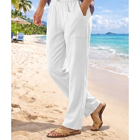 Dam Byxor av linne i bomull Brett skaft Kinesiska Sommarbyxor Semester Streetwear Grundläggande Fullängd Medium Midja Slät Ficka Elastisk midja Bekväm Komfort Microelastisk Utomhus Semester Gata