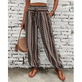 Dam Damasker Semester Vintage Etnisk Stil Ankellång Hög midja Grafisk 3D-utskrift Snabb tork Mateial som andas Mjuk Elastisk Dagligen Hem Utomhus Blå Gul Himmelsblå Vår Höst Normal