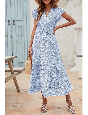 Dam Maxiklänning Långklänning Maxiklänning Strandklänning Blommig klänning Boho-klänning Elegant Mode Modern Dagligen Utomhus Semester Normal Blommig Kortärmad V-hals Blå Gul Rubinrött Marinblå