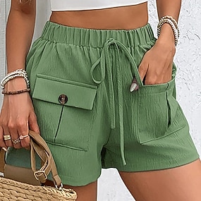 Dam Shorts Sommarshorts Beach Shorts Semester Mode Ledigt vardag Kort Medium Midja Ensfärgat Slät Ficka Elastisk midja Komfort Snabb tork Mjuk Oelastisk Streetwear Strand Helgdag Grön Sommar Vår