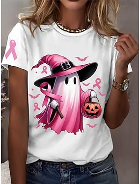 Kvinnors T-shirt Häxa Grafisk Spöke Vintage Stilig Klassisk Kort Ärmar Crew Neck Rund Hals Regular Tops Daglig Helg Tryck Svart Vit Grå Sommar Vår Höst