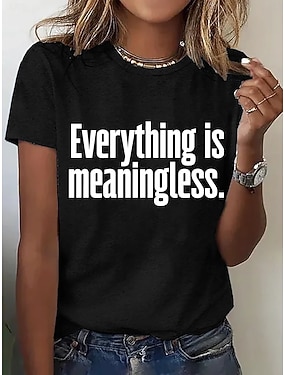 Dam T-shirt Lappverk Mönster Bokstav Rolig Slang Stylish Grundläggande Klassisk Kortärmad Rund hals Vanliga toppar Dagligen Grön och Blå Svart Sommar Vår Höst I'm Fine Everything Is Fine