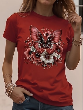 Dam T-shirt Mönster Fjäril Mode Modern Kortärmad Rund hals Vanliga toppar Dagligen Blå Gul Rodnande Rosa Himmelsblå Sommar