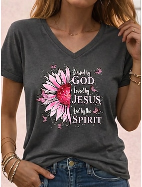 Dam T-shirt Färgblock Mönster Blommig Grafisk Vintage Stylish Klassisk Kortärmad V-hals Vanliga toppar Dagligen Helgen Svart Vit Orange Grå Sommar Vår