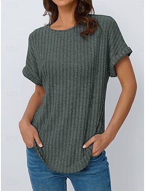Dam T-shirt T-tröja Rynkad Slät Mode Stylish Klassisk Kortärmad Rund hals Vanliga toppar Dagligen Utekväll Helgen Blå Svart Vit Rodnande Rosa Vin Sommar Vår