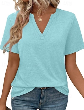 Dam T-shirt T-tröja Slät Mode Stylish Klassisk Kortärmad V-hals Vanliga toppar Dagligen Utekväll Helgen Blå Svart Vit Rubinrött Sommar Vår