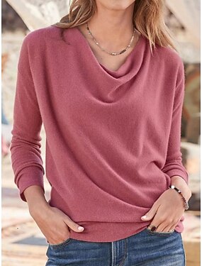 Dam Blus Lappverk Ensfärgat Mode Ledigt Långärmad Skorstenskrage Vanliga toppar Dagligen Utekväll Helgen Blå Rodnande Rosa Orange Kaki Ros rosa Sommar Vår Höst