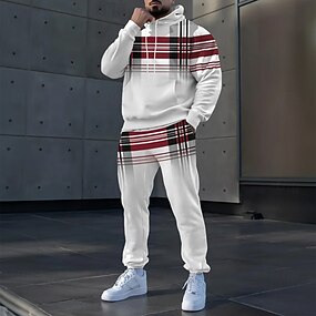Herr Färgblock Horisontella Strips 2st 3D-tröja set Träningsoverall Hoodie-tröja Långärmad Långa byxor Huva Sportig Ledigt vardag Fritids- 3D-utskrift Vår Höst Vinter Vit Rubinrött