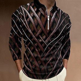 Herr 3D-utskrift Pikétröjor Golf pikétröjor Långärmad Polotröjor Krage Business Casual Semester Vardag Dragkedja 3D-utskrift Vår Höst vinter Svart Bläck blå Mörklila