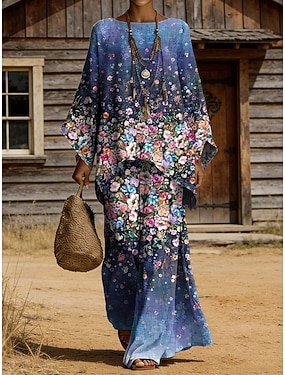 Dam Byxuppsättningar Långärmad Rund hals Blommig Grafisk Geometrisk Mönster Mode Streetwear Ledigt Dagligen Utomhus Blå Grön Sommar Lös passning