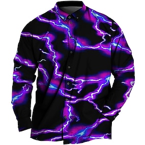 Herr Plusstorlekar Skjorta Stor och lång Grafiska tryck Nedvikt Knappar Långärmad Vår & sommar Sport Mode Streetwear Designer Utomhus Semester Blast