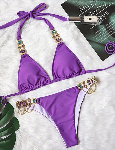 Dam Vanligt Badkläder Bikini 2 st G-string Baddräkt Glitter Semester Mode Ensfärgat Doppa Ärmlös Baddräkter