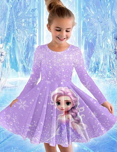 Flickor 3D Tecknat Prinsessa Klänning Långärmad 3D-tryck Vår Höst Semester Sport & Utomhus Dagligen söt stil Ledigt Skön Barn 3-12 år Vardagsklänning A linjeklänning Ovanför knäet Normal
