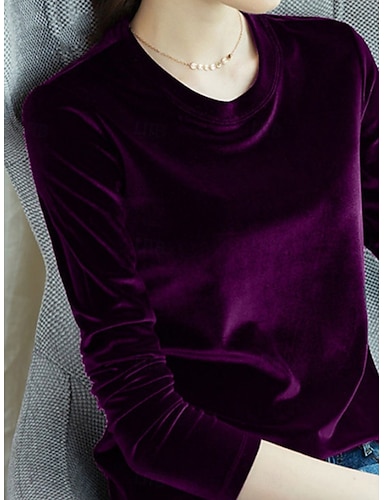 Julens kvinnors sammet blus enfärgad elegant stiliga grundläggande långärmad cowl neck regular toppar daglig rynkad svart blå smaragdgrön lila fuchsia vår höst vinter