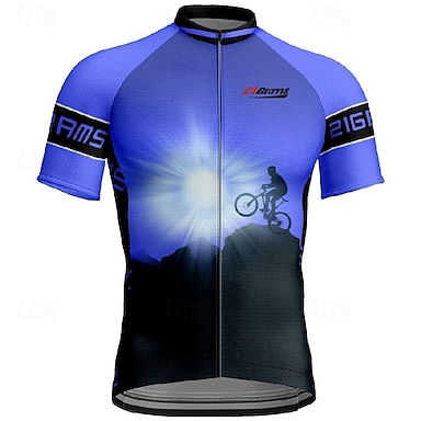 Herr Cykeltröja Geometrisk Bokstav & Nummer Kortärmad Cykel T-shirt Tröja med 3 bakfickor Bergscykling Snabb tork Anatomisk design Uppsugande Andningsfunktion sporter Mörklila Blå Himmelsblå Kläder