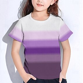 Flickor 3D Grafisk Randig T-shirt Kortärmad Sommar Vår Mode Grundläggande Barn 4-12 år Rund hals Utomhus Ledigt Dagligen Normal