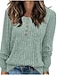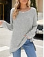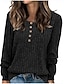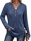 Dam Blus Ensfärgat Stylish Ledigt Långärmad Rundhals Vanliga toppar Dagligen Knappar Marinblå Mörkgrå Grå Vår Höst Vinter