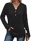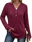 Dam T-shirt Slät Mode Modern Ledigt Långärmad V-hals Vanliga toppar Dagligen Helgen Knappar Rubinrött Grön Höst Vinter
