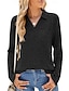 Dam Blus Ensfärgat Stylish Ledigt Långärmad V-hals Vanliga toppar Dagligen Ficka Salvia grön Svart Rubinrött Grön Grå Vår Höst Vinter