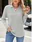 damskjortblus ribbade modeknappar långärmade vanliga toppar v-ringad ledig vit kakigrå vår & falla
