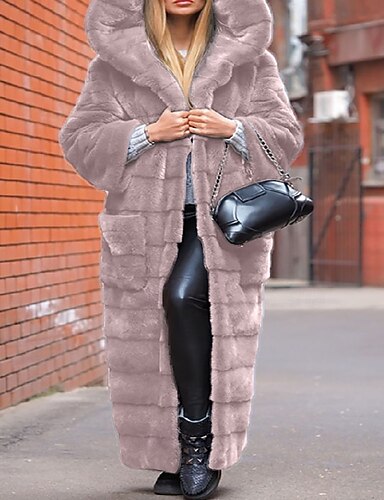 Dam Vinterkappa Fuskpälskappa Håller värmen Bekväm Ficka Pälsar och läder Mode Ledigt Slät Semester Gata Ledigt Dagliga kläder Lång Huva Normal Långärmad Ytterkläder Svart Rodnande Rosa Purpur Höst