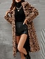 Dam Vinterkappa Kappa Fuskpälskappa Håller värmen Bekväm Pälsar och läder Mode Ledigt Leopard Semester Gata Ledigt Dagliga kläder Lång Nedvikt Normal Långärmad Ytterkläder Rodnande Rosa Mörkrosa Brun