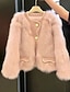 Dam Vinterkappa Fuskpälskappa Håller värmen Bekväm Ficka Knappar Ledigt Slät Utomhus Semester Utekväll Helgen Normal Rund halsringning Normal Långärmad Ytterkläder Rodnande Rosa Beige Höst Vinter