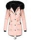 Dam Vinterkappa Kappa Fuskpälskappa Håller värmen Bekväm Ficka Knappar Ledigt Färgblock Semester Gata Ledigt Helgdag Normal Lång Huva Normal Långärmad Ytterkläder Svart Rodnande Rosa Brun Höst Vinter