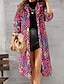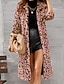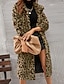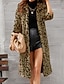 Dam Vinterkappa Kappa Håller värmen Bekväm Öppen front Mode Leopard Utomhus Semester Utekväll Helgen Lång Nedvikt Normal Långärmad Ytterkläder Rodnande Rosa Brun Grön Höst Vinter