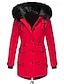 Dam Anorak Håller värmen Bekväm Dragkedja Ficka Med bälte Pälskrage Ledigt Ensfärgat Semester Gata Ledigt Dagliga kläder Lång Huva Normal Långärmad Ytterkläder Svart Rodnande Rosa Vin Vinter