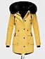 Dam Vinterkappa Anorak Håller värmen Bekväm Ficka Knappar Pälskrage Mode Ledigt Slät Semester Gata Ledigt Dagliga kläder Normal Huva Normal Långärmad Ytterkläder Gul Rodnande Rosa Rubinrött Höst