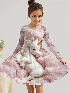 Flickor 3D Enhörnings Klänning Långärmad Sommar Vår Semester Dagligen Helgdag Prinsessa Skön Ljuv Barn 4-12 år Vardagsklänning A linjeklänning Knälång Normal
