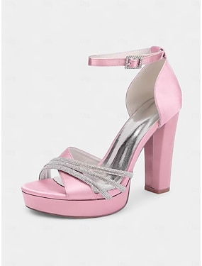 Rosa platåsandaler med blockklack för kvinnor - eleganta trädgårdsskor med bröllopsgäster