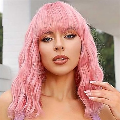 Lila peruk med lugg mjuk kort bob vågig peruk för kvinnor syntetisk axellång damer lockiga peruker för halloween kostymer cosplay dagligen