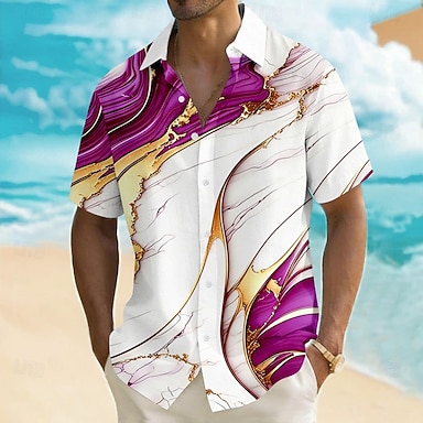 Herr Geometrisk Marmor Abstrakt flytande konst Skjorta Casual skjorta Knapp upp skjorta Kortärmad Mode Casual Utomhus Semester Sommar Vår Nedvikt 3D-utskrift Linne som skjorta Blå Purpur Grön Rosenröd
