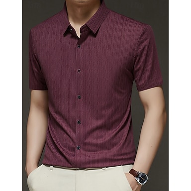 Herr Skjorta Konsistens Casual skjorta Knapp upp skjorta Jacquardskjorta Rubinrött Marinblå Grön Kortärmad Slät Tröjkrage Ledigt Dagligen Jacquard Kläder Elegant Mode Ledigt