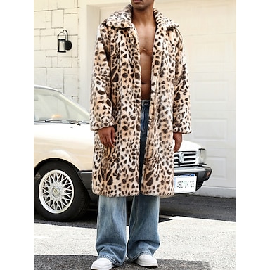 Herr Vinterkappa Pälskappa Kappa Semester Ledigt Vinter Polyester Mjuk Utomhus Ytterkläder Kläder Uppvärmning Komfort Leopard Ficka Kavajslag