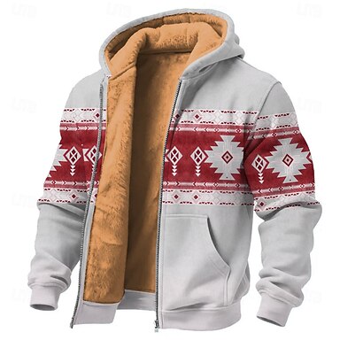 Herr Aztek Fleece Huvtröja Jakke Tröja Etnisk Klassisk Vintage retro Rund hals Utomhus Resor Camping Rubinrött Blå Grön Dragkedja Höst Vinter Designer S M L XL 2XL 3XL