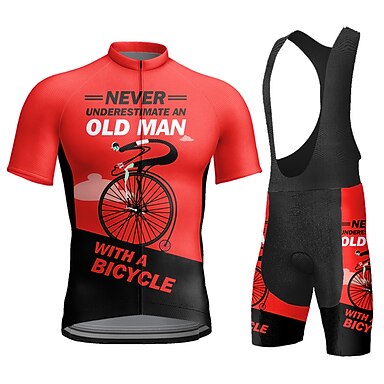 Herr Cykeltröja med Haklapp-shorts Kortärmad Bergscykling Vägcykling Sommar Blå Gul Rosa Grafisk Bokstav & Nummer Rolig Cykel 3D Tablett Snabb tork Bakficka Fuktabsorberande Andningsfunktion Elastan
