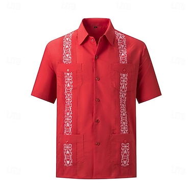 Herr Skjorta Svart Vit Ljusgrön Rodnande Rosa Vin Kortärmad Broderi Tröjkrage Ledigt Broderi Kläder Elegant Semester Vintage Dagligen
