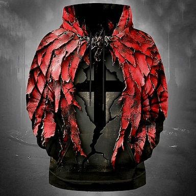 Herr Joker 3D Huvtröja Tröja Punk drivna Gotiskt Ledigt Långärmad Rund hals Huva Nattklubb Streetwear Rubinrött Grå Snörning Höst Vinter Designer S M L XL XXL XXXL
