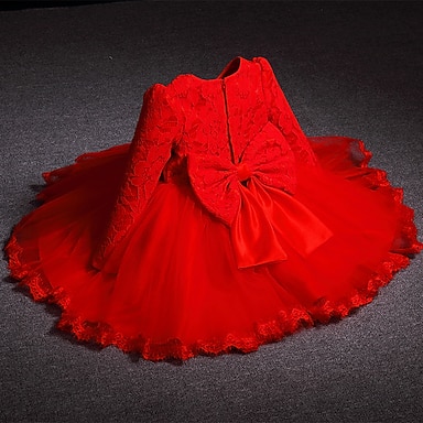 Brudnäbbsklänning Barn Flickor Prinsessaklänning Prestanda Bröllop Fest Elegant Skön Spets Ensfärgat Ärmlös Rund hals Rodnande Rosa Rubinrött 4 år +
