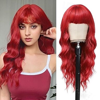 lång vågig peruk med lugg vågig peruk med lugg för kvinnor - naturligt utseende syntetiskt hår peruk daglig fest halloween peruk