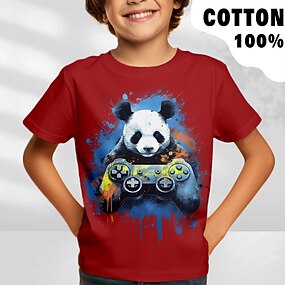 Pojkar 3D Grafisk Djur Panda T-shirt Kortärmad 3D-tryck Sommar Vår Aktiv Sport Mode 100 % bomull Barn 3-12 år Utomhus Ledigt Dagligen Normal
