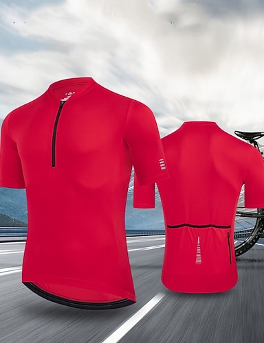 Herr Cykeltröja Enfärgat Kortärmad Cykel Tröja Överdelar med 3 bakfickor UV-resistent Snabb tork Bakficka Svettavvisande sporter Svart Vit Rubinrött Kläder
