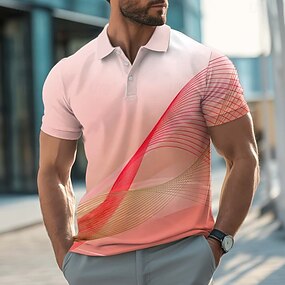 Herr Geometrisk Våffelpikétröjor Golftröja Kortärmad Polotröjor Skjortor med krage Arbetskläder Högtidskläder Festivalkläder 3D-utskrift Knappar Sommar Vår Rubinrött