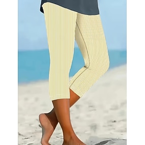 Dam Kinesiska Damasker Vardagsklädsel Semester Vintage Streetwear Kapris Hög midja Grafisk Rand Tryck Komfort Mjuk Bekväm Hög Elasisitet Dagligen Utomhus Semester Gul Sommar Vår Höst Smal passform