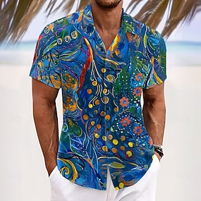 Herr Blommig Tropiska blommor Hawaii skjorta Aloha skjorta Kort ärm Skjorta Nedvikt Hawaiisk Ledigt Tillflykt Utomhus Semester Gata Blå Grön S M L
