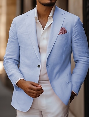 Herr Linne blazer Sportrock Bröllop Ledigt / vardag Mode Alla årstider Linne i bomull Solid färg Grundläggande Enkelknäppt med Två Knapphål Blazer Vit Himmelsblå Beige